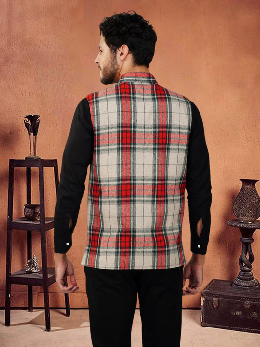 Vastraa Fusion Modi Jacket Waistcoat Checks Pattern Woolen Nehru Jacket