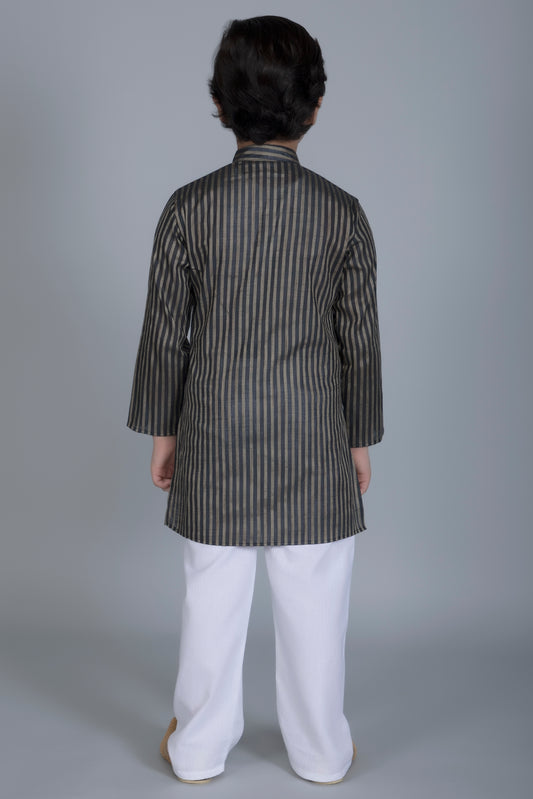Vastraa Fusion Boy's Gold Line Handloom Weaving Pure Cotton Kurta, Full Sleeves, Wooden Button , Ethnic Wear