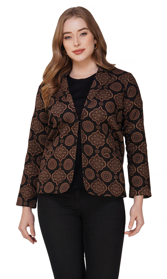 Vastraa Fusion Ladies Block Printed Single Breasted Blazer Pockets Regular Fit Stylish Blazer for Women