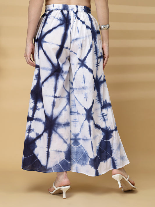 Vastraa Fusion Women Cotton Tie-Dye Wide-Leg Palazzo with Both Side Pockets