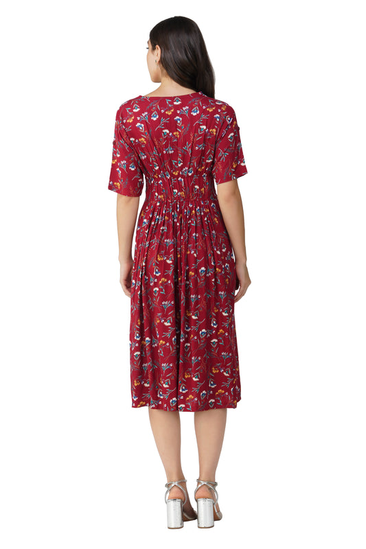 Vastraa Fusion Women's Rayon Floral Printed Midi Flared Dress for Women