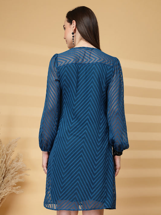 Vastraa Fusion Women's Georgette A-Line Dress with Cotton Lining Chevron Pattern