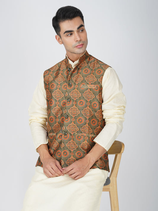 Vastraa Fusion Men's Indian Traditional Cotton Nehru Jacket/Waistcoat