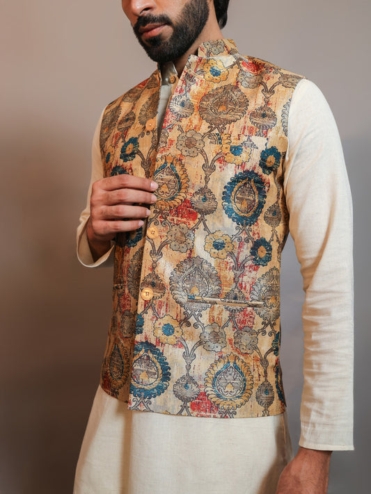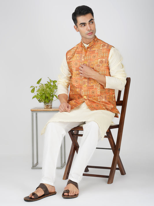 Men's Digital Printed - Mango Silk Nehru Jacket Ladies Modi Jacket / Waistcoat