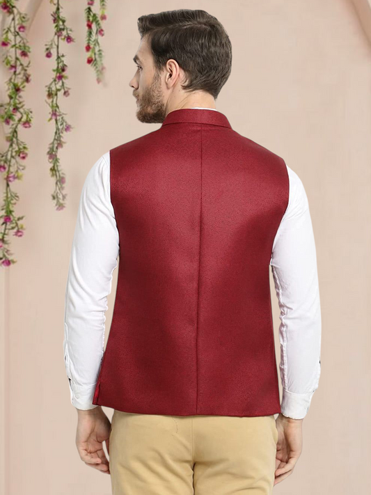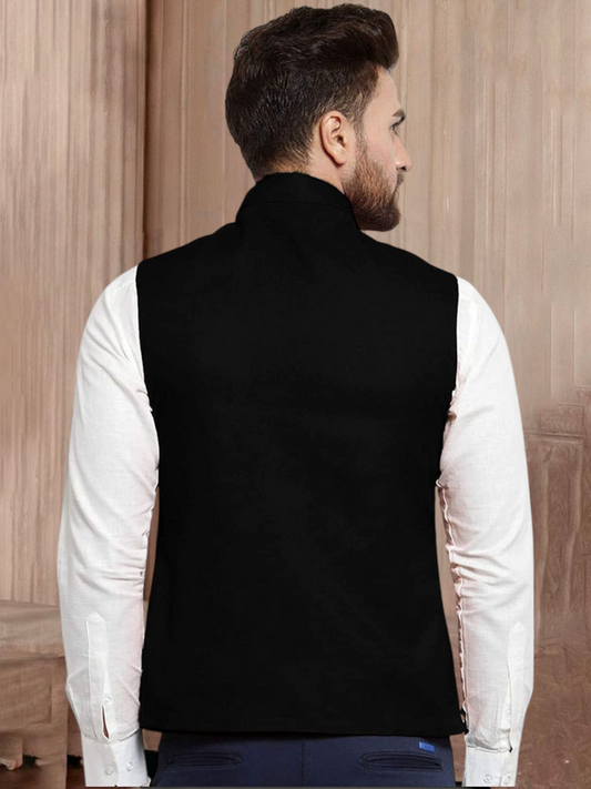 Vastraa Fusion Men's Indian Traditional Cotton Solid Nehru Jacket/Waistcoat