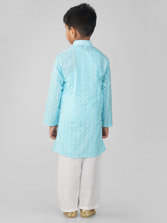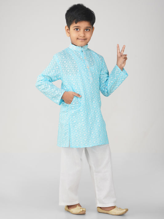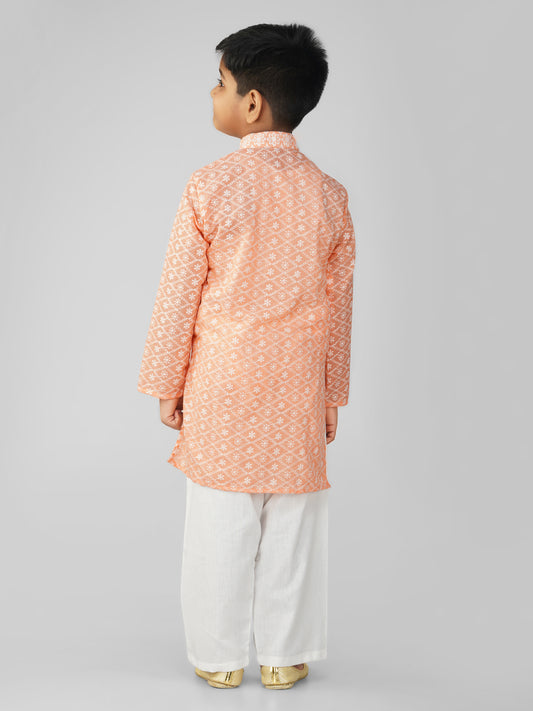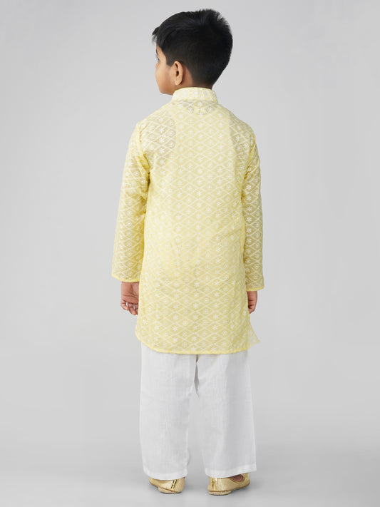 Vastraa Fusion Kid's Chikan Embroidery Kurta Pure Cotton Long Kurta
