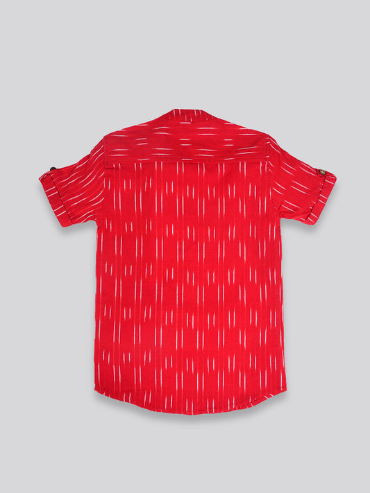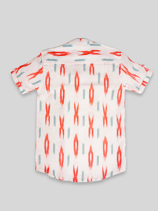 Vastraa Fusion Ikat Print Pure Cotton Spread Collar, Helf Sleeves, Button Shirt Casual Wear For Kid's
