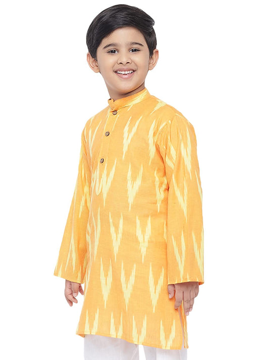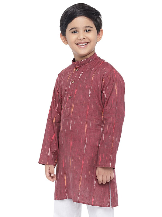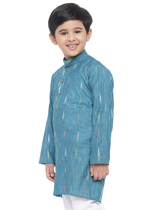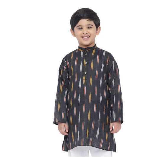 Kurta Pajama for Kids- Khadi Look in Mix Ikat Patterns South Cotton Kurta Pajama