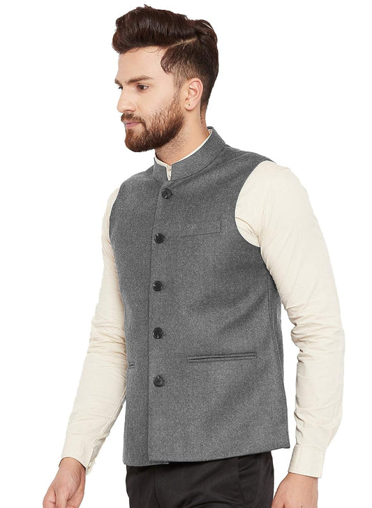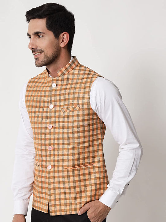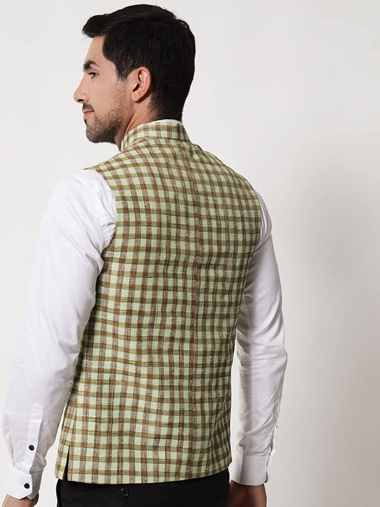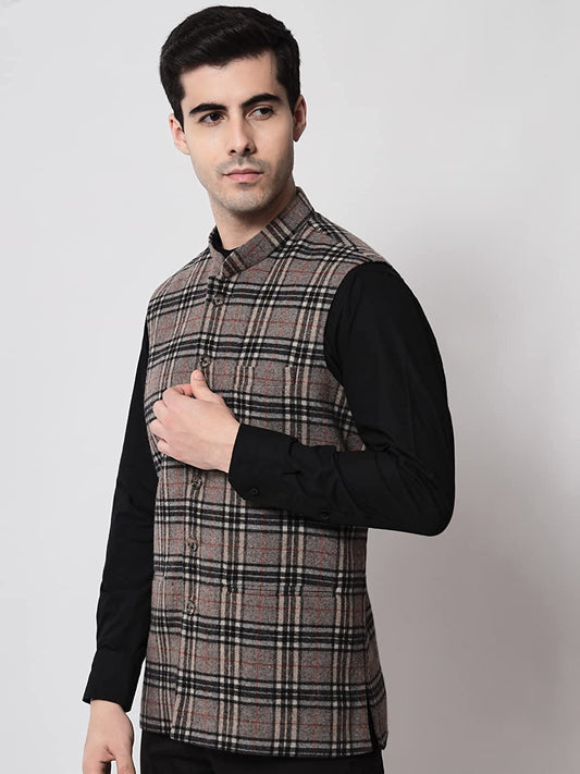 Vastraa Fusion Modi Jacket Waistcoat Checks Pattern Woolen Nehru Jacket