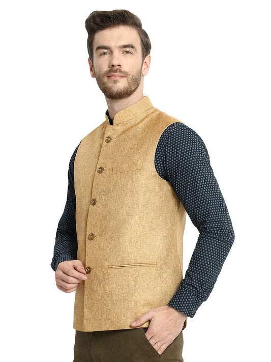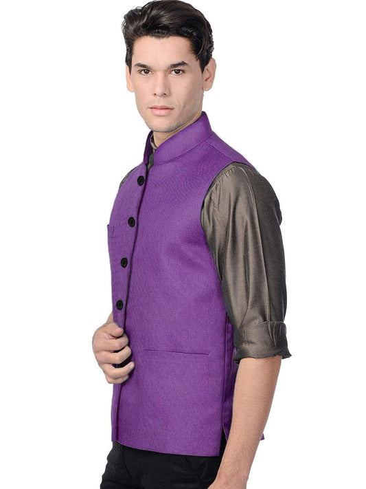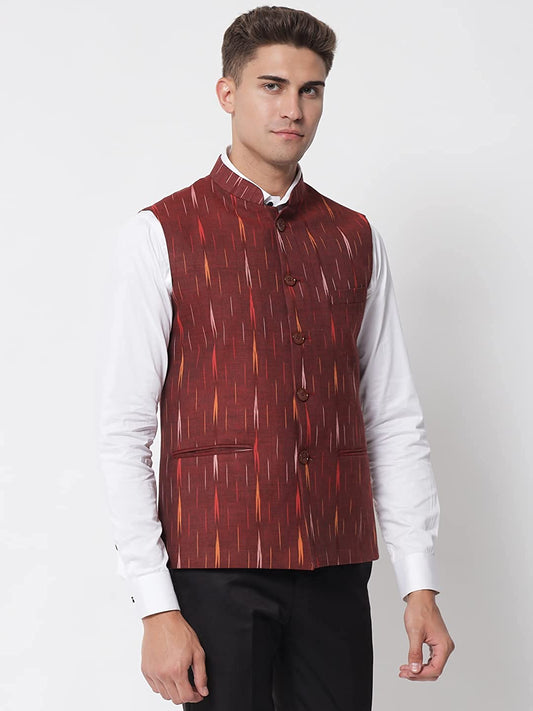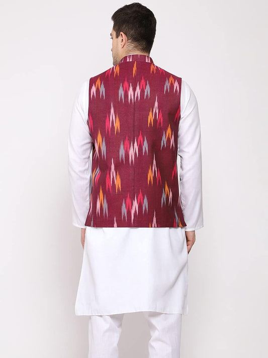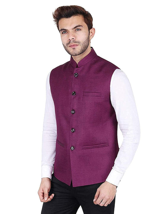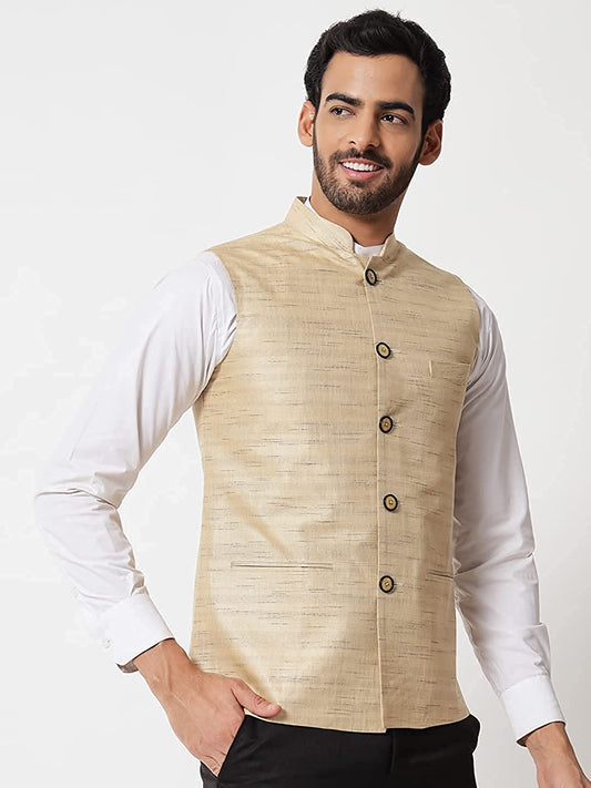 Vastraa Fusion Men's Indian Traditional Cotton Solid Nehru Jacket/Waistcoat