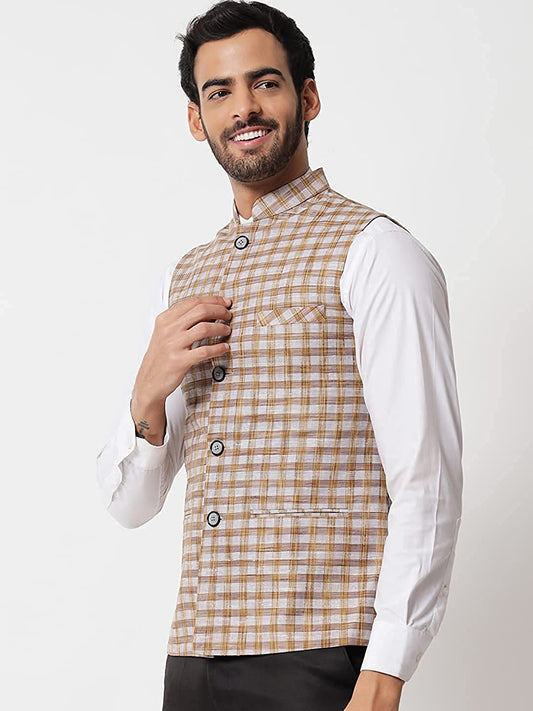 Vastraa Fusion Modi Jacket / Waistcoat - Chabila Block Check Patterns - South Cotton Jacket