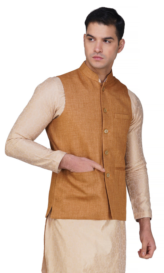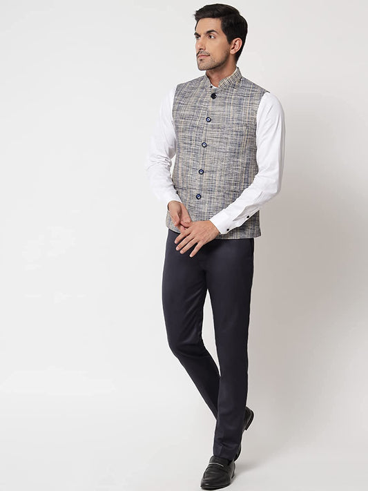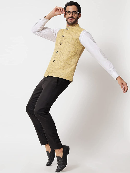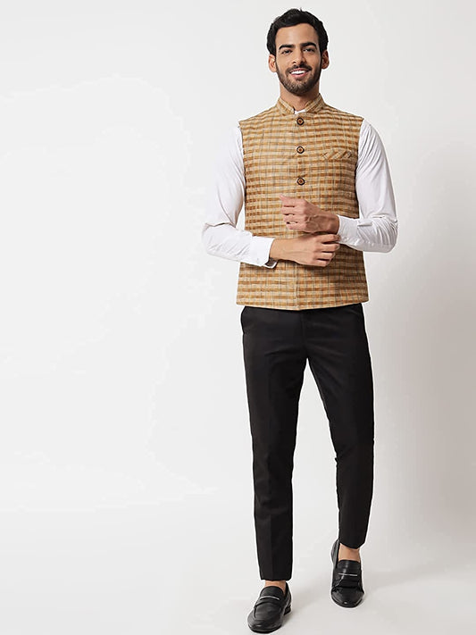 Vastraa Fusion Men's Indian Traditional Cotton Nehru Jacket/Waistcoat