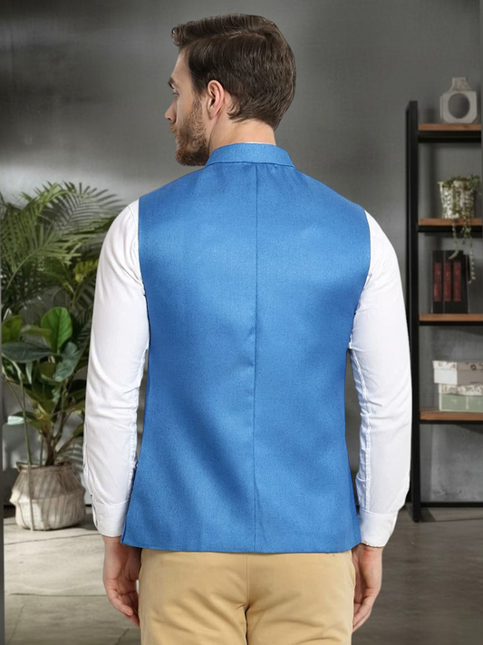 Vastraa Fusion Men's Indian Traditional Cotton Solid Nehru Jacket/Waistcoat