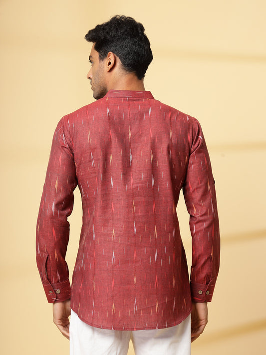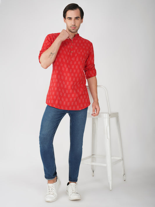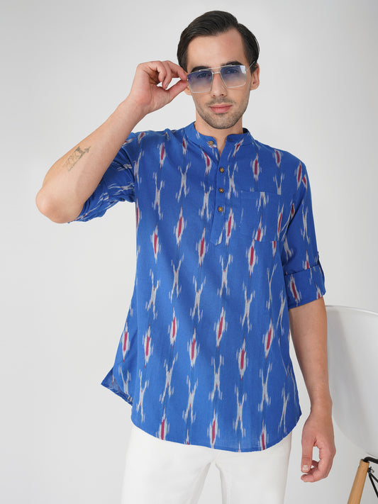 Vastraa Fusion Ikat Pattern Short Kurta For Men