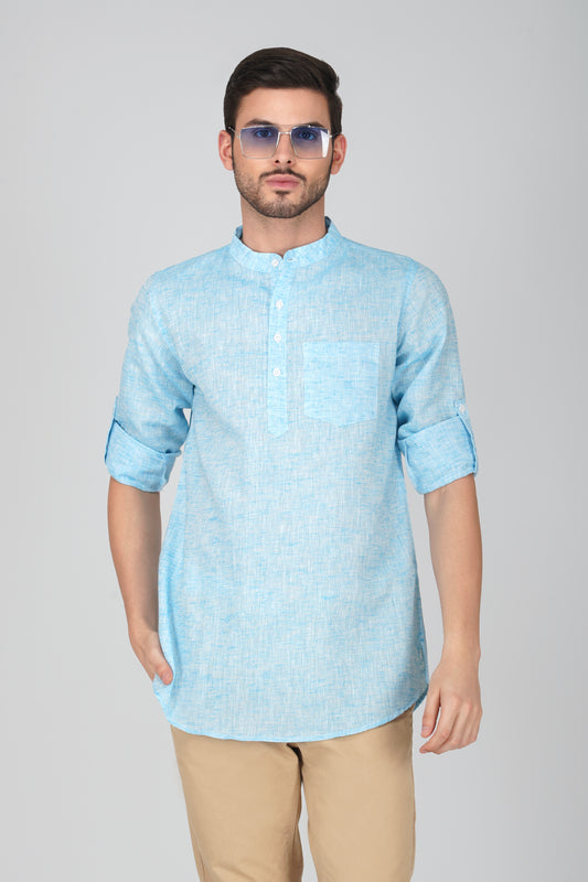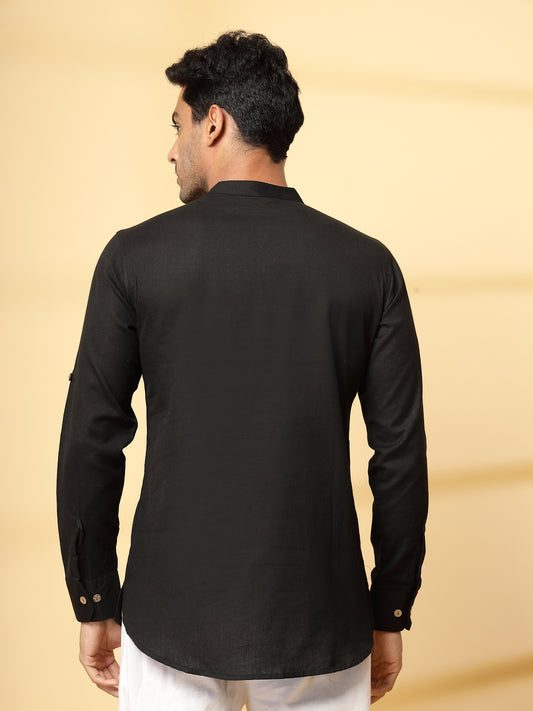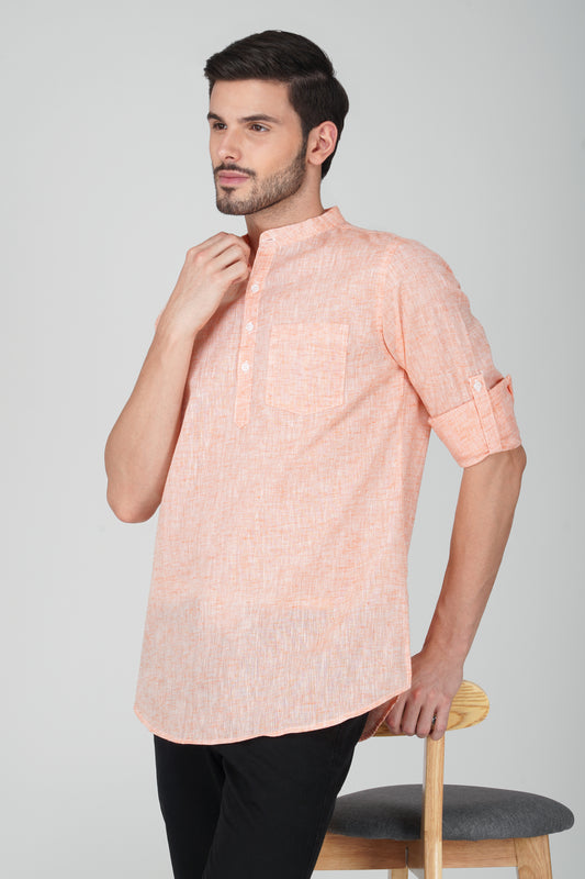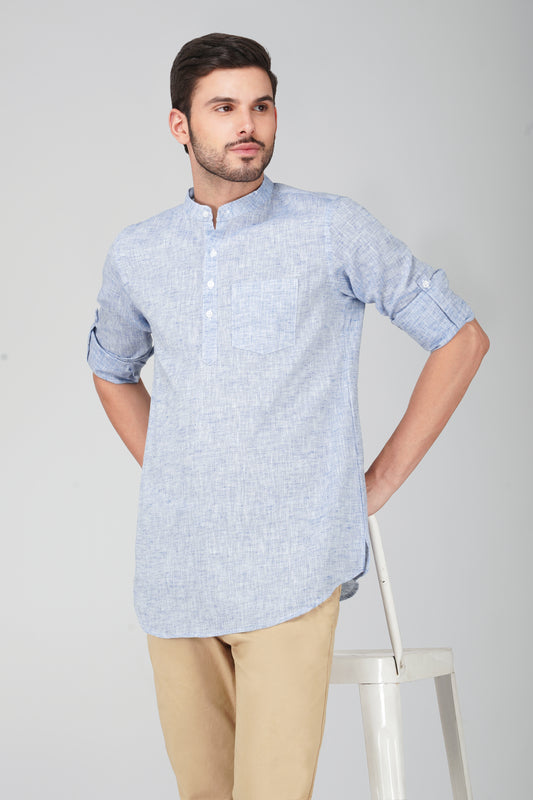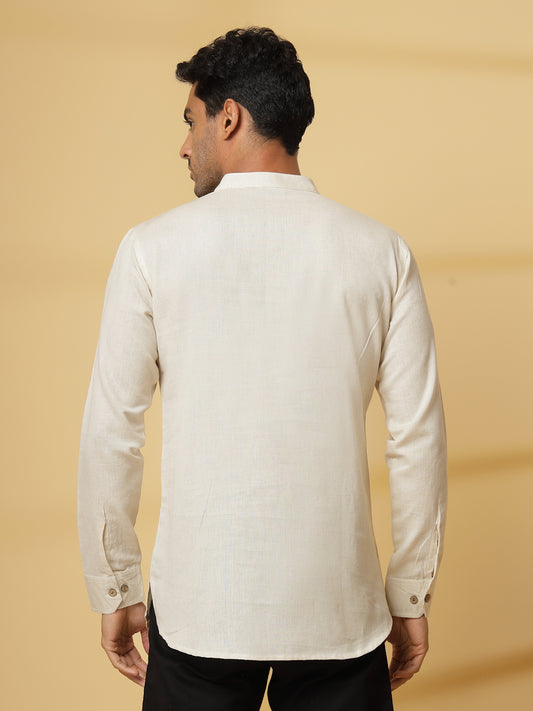 Vastraa Fusion Khadi Short Kurta For Men Casual Solid Pattern Short Kurta