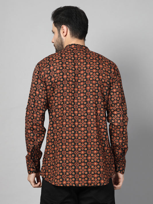 Vastraa Fusion Men's Block Print Cotton Summer Shirt (Chinees Collor)