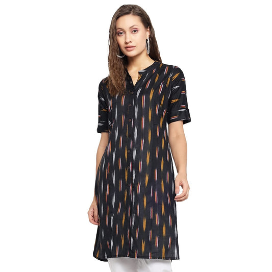 Vastraa Fusion Women's Pure Cotton Handloom Ikat Work Kurta/Kurti