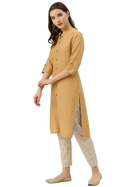 Vastraa Fusion Women's Pure Cotton Solid Button Kurti