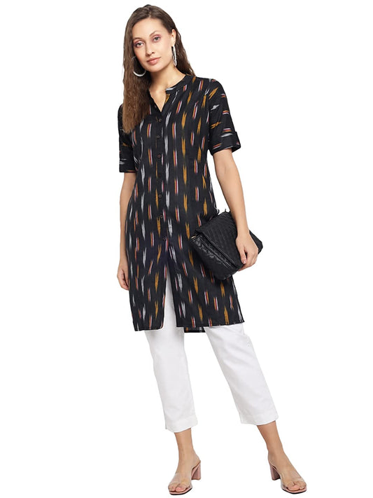Vastraa Fusion Women's Pure Cotton Handloom Ikat Work Kurta/Kurti