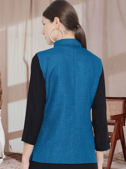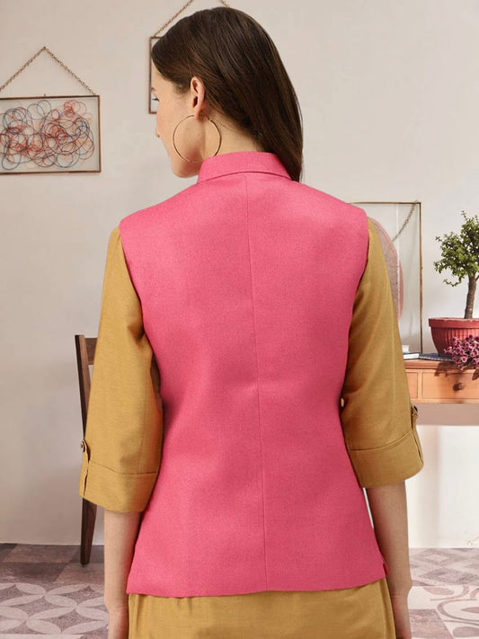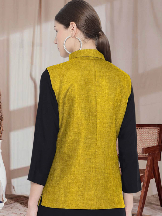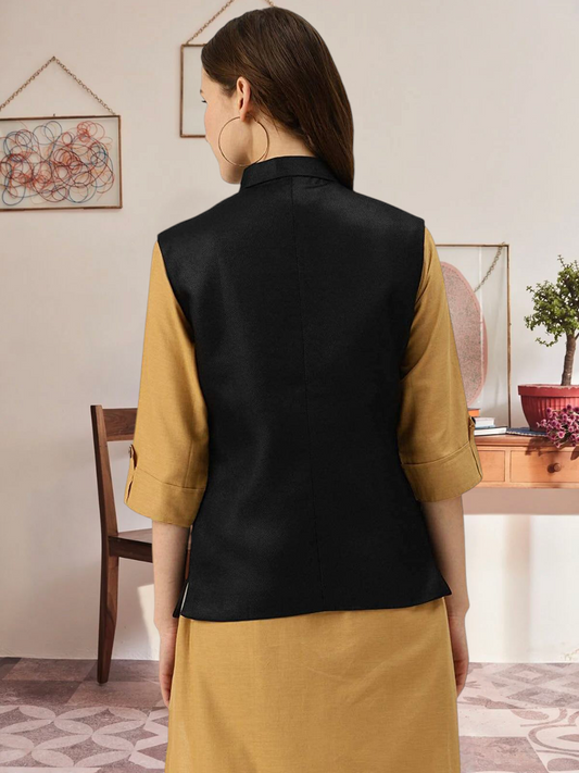 Vastraa Fusion Ladies Modi Jacket / Waistcoat - Plain Solid Colurs - Cotton Mix Nehru Jacket