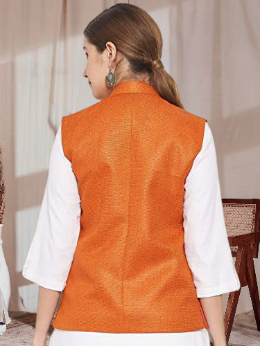 Vastraa Fusion Solid Indian Traditional Ethnic Waistcoat Festive Woolen Nehru Jacket for Women