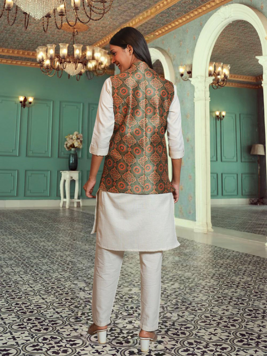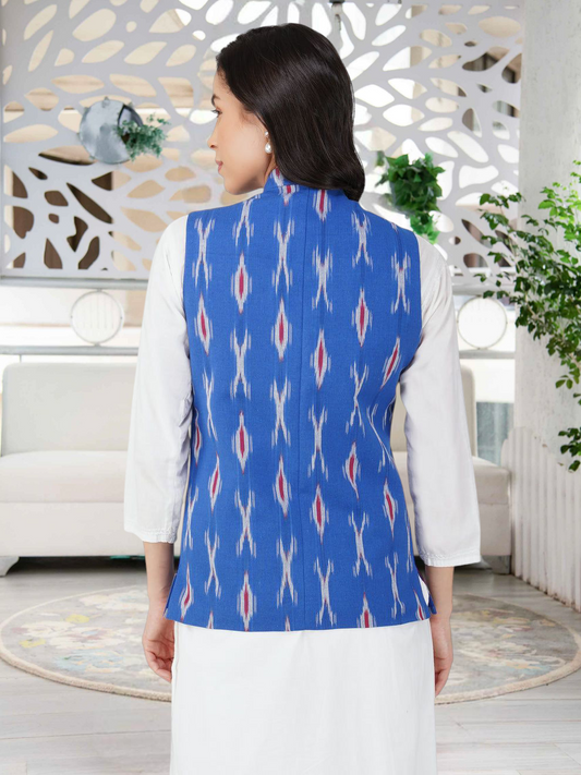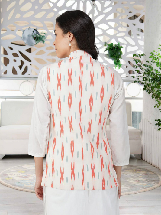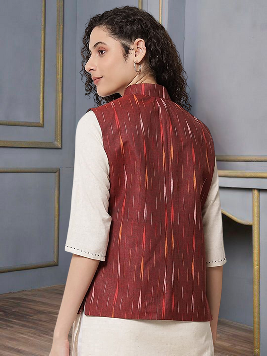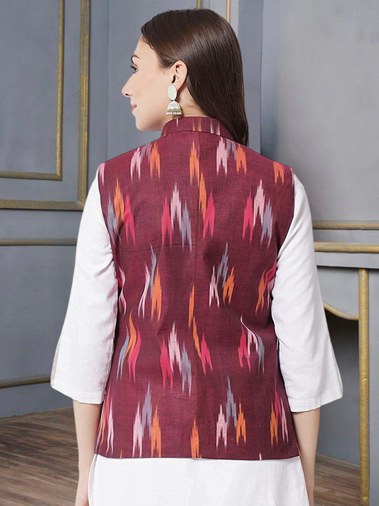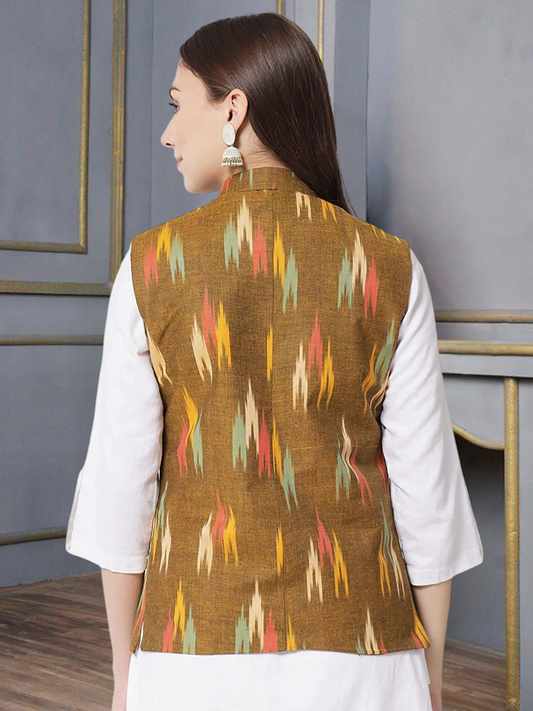 Ladies Modi Nehru Jacket / Waistcoat - Khadi Look in Mix Ikat Patterns Jacket