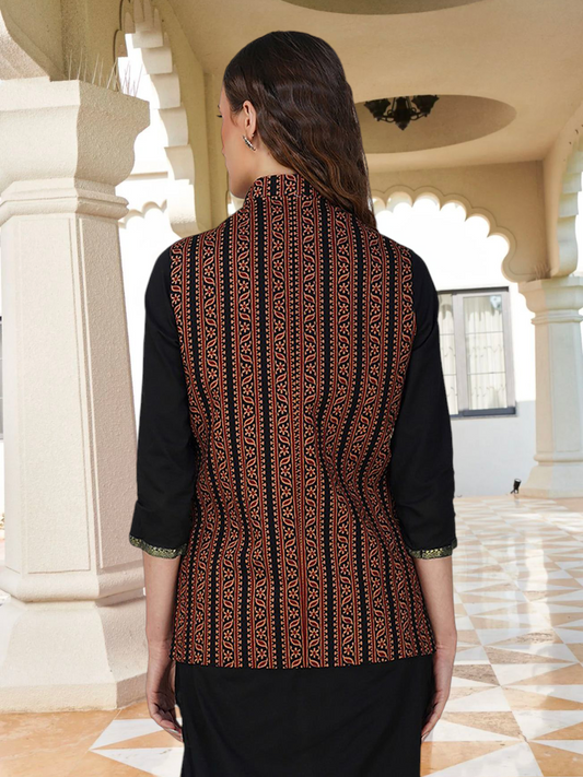 Ladies Modi Jacket / Waistcoat - Printed Look Designer Patterns - Cotton Nehru Jacket