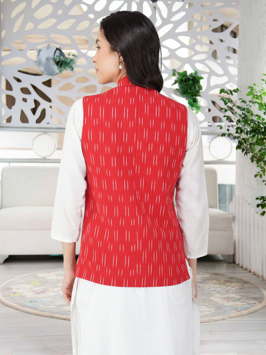 Ladies Modi Jacket / Waistcoat - Khadi Look in Mix Ikkat Patterns - South Cotton Nehru Jacket