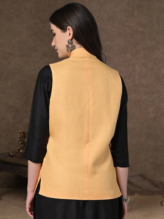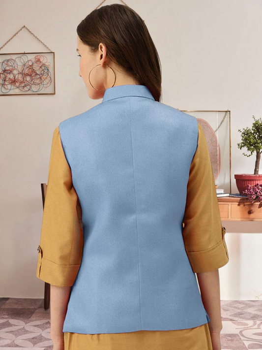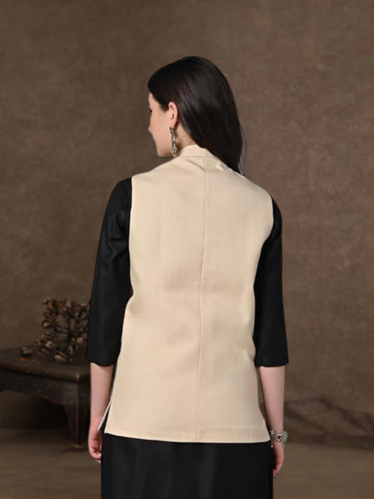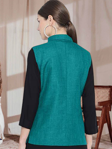 Vastraa Fusion Ladies Modi Jacket / Waistcoat - Plain Solid Colurs - Cotton Mix Nehru Jacket