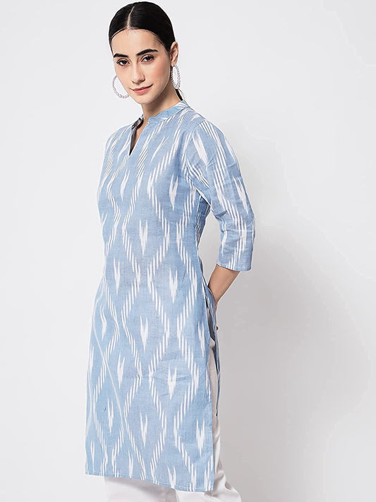 Vastraa Fusion Women's Pure Cotton Handloom Ikat Work Kurta/Kurti