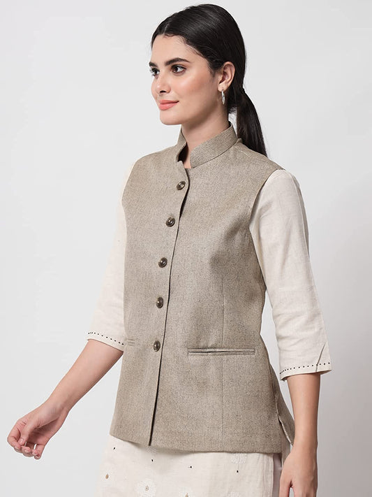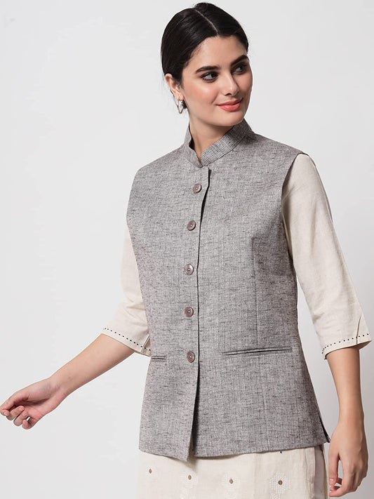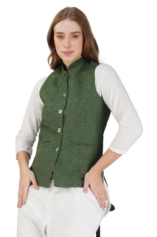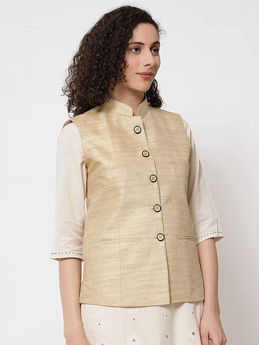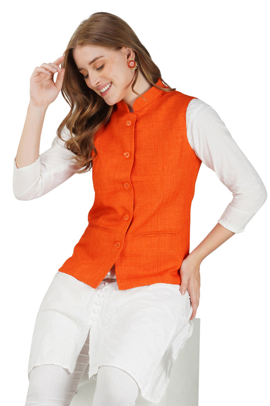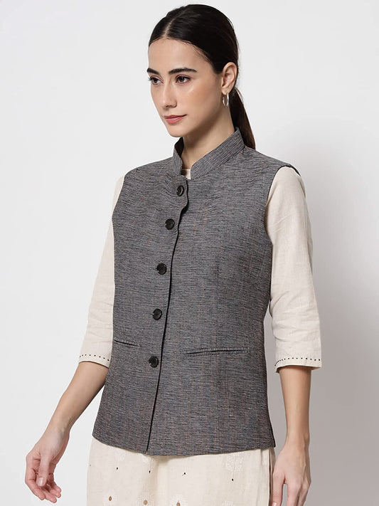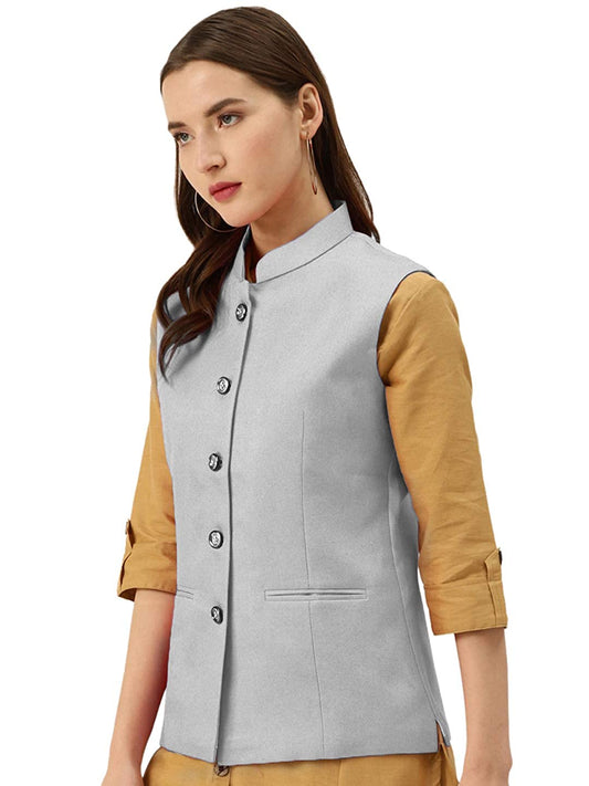 Vastraa Fusion Ladies Modi Jacket / Waistcoat - Plain Solid Colors - Cotton Mix Nehru Jacket