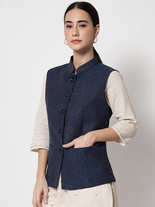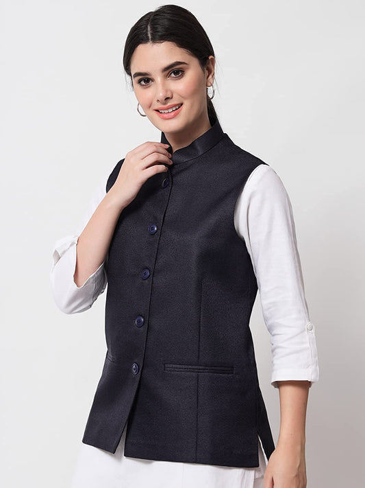 Vastraa Fusion Ladies Modi Jacket / Waistcoat - Plain Solid Colurs - Cotton Mix Nehru Jacket