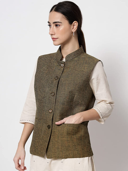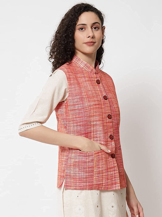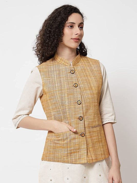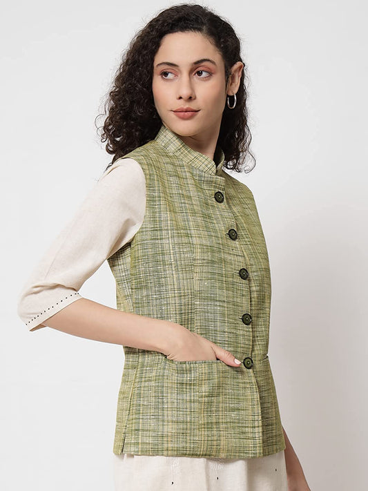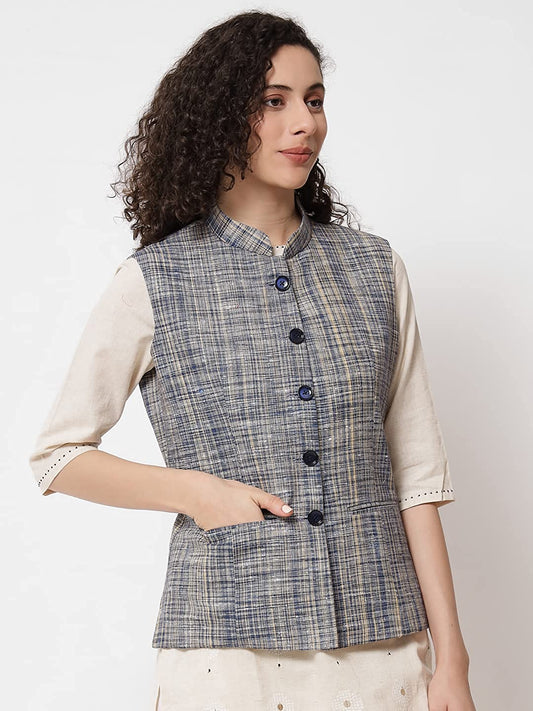 Vastraa Fusion Ladies Khadi Cotton-Small Check Patterns Modi Jacket Waistcoat