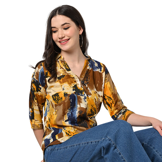 Vastraa Fusion Women's Casual Brush Painted Cotton Top