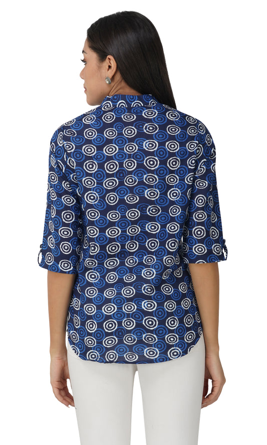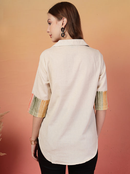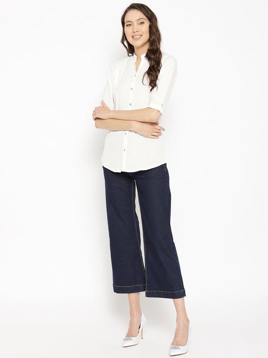Vastraa Fusion Women's Solid Mandarin Collar 3/4 Sleeve Casual Shirt Lightweight Cotton Top