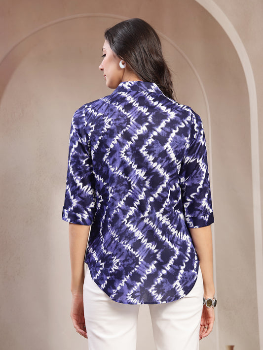 Vastraa Fusion Women’s Printed Casual Shirt Top |Abstract Print Casual Wear | Collared Neck | 3/4 Sleeve Regular Fit Top
