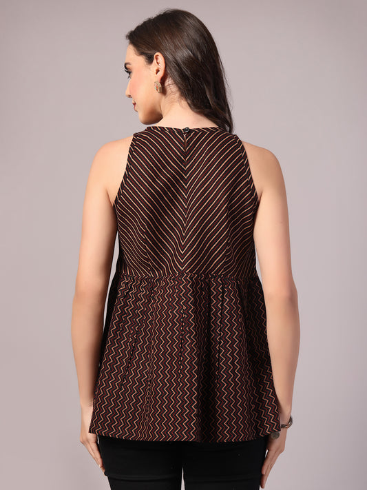Vastraa Fusion Cotton Geometric Print Back Zig Zag Pattern Shirt Halter Neck Peplum Women's Top
