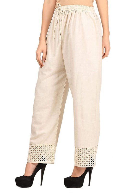 Vastraa Fusion Straight Regular Fit Stylish Solid Cotton Embroidered Lace Palazzo or Bottoms For Women's and Girls