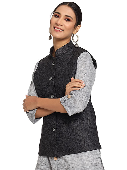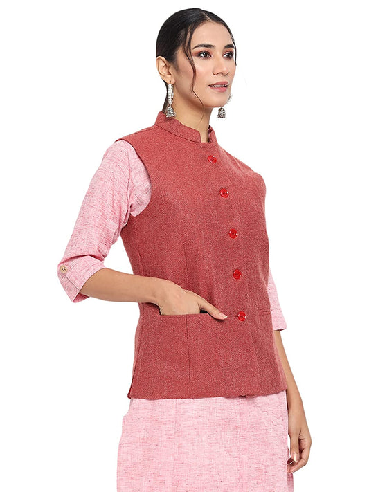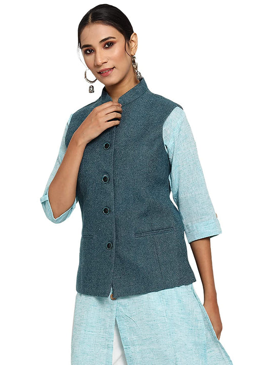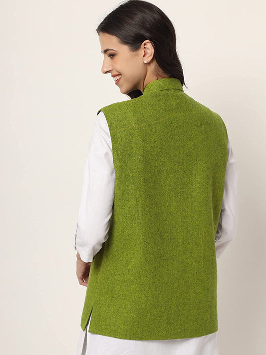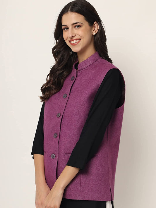 Vastraa Fusion Solid Indian Traditional Ethnic Waistcoat Festive Woolen Nehru Jacket for Women