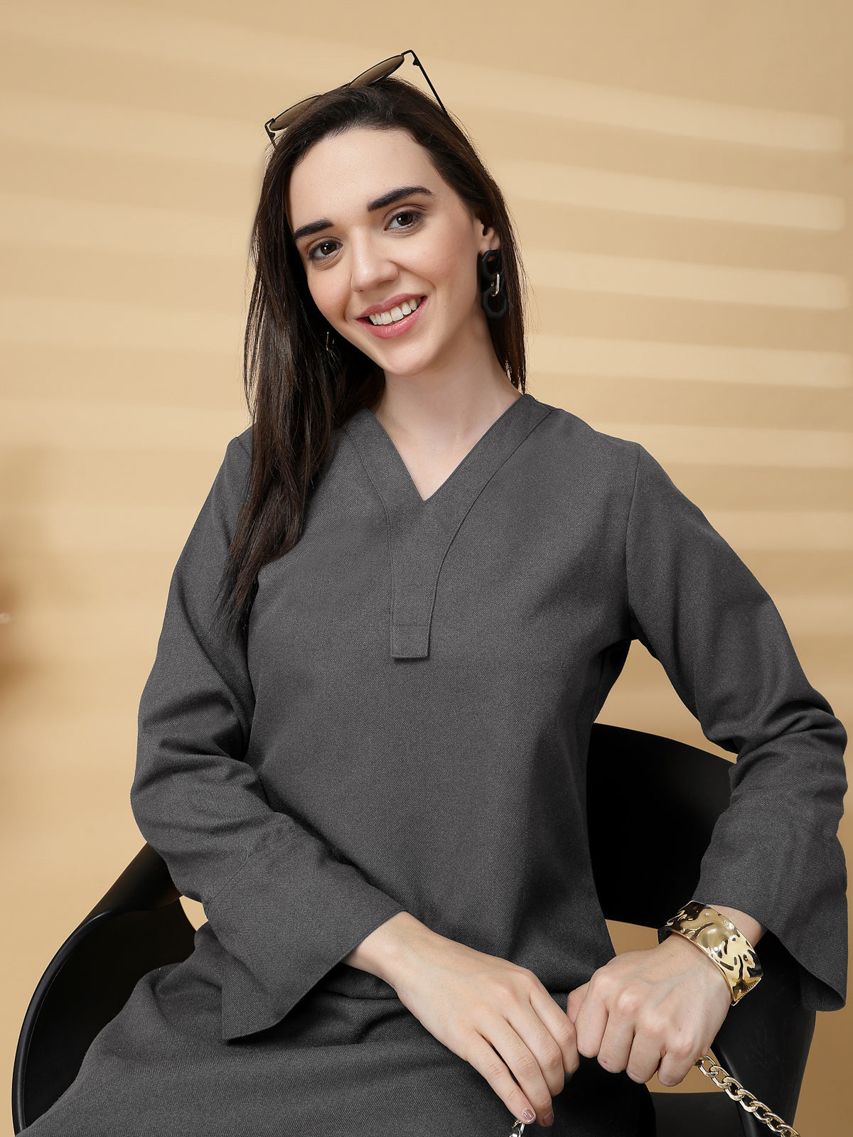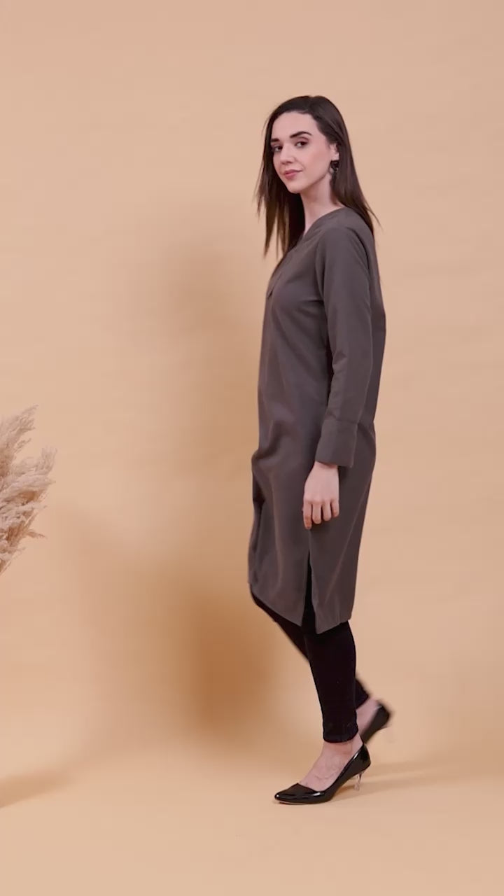 - Stylish woolen kurti with a flattering V-neck