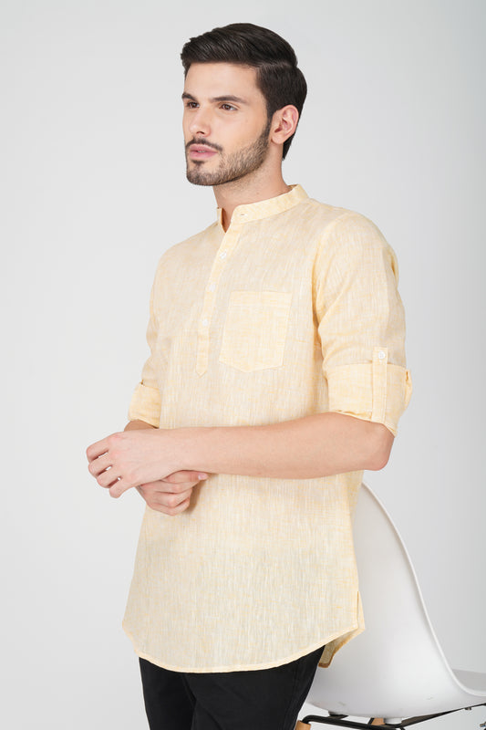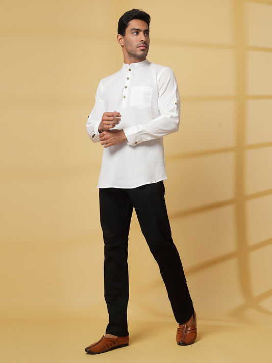 Vastraa Fusion Khadi Short Kurta For Men Casual Solid Pattern Short Kurta