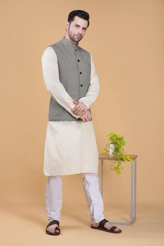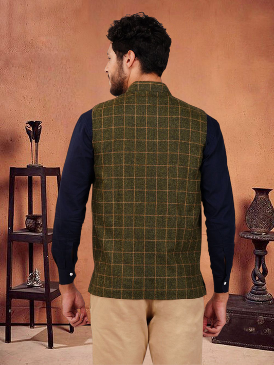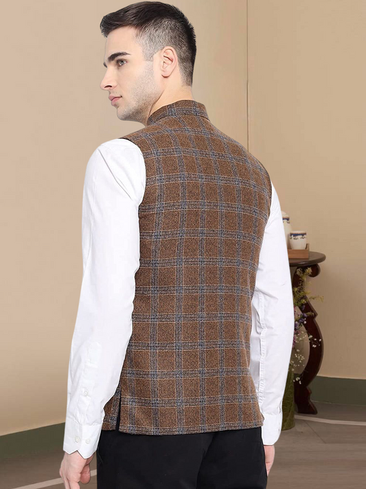 Vastraa Fusion Modi Jacket Waistcoat Checks Pattern Woolen Nehru Jacket