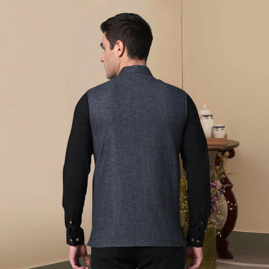 Vastraa Fusion Men's Traditional Woolen Nehru Jacket Modi Waistcoat